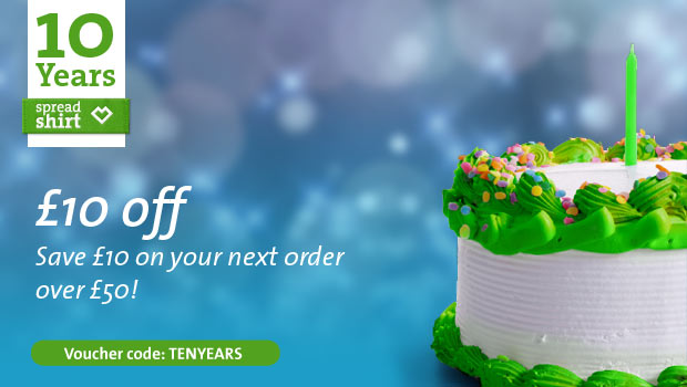 All good things come in 10! Ten fingers, Ten Commandments, ten-spotted ladybirds, ten years of Spreadshirt… and a £10 discount for you.