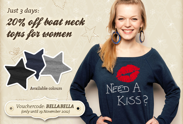 We do hope we can impress you with our 20% discount on Bella scoop-neck tops for women and make the search for a gift that fits the bill a little easier. With the voucher code BELLABELLA you will be able to get these beauties cheaper only until November 19th 2012.