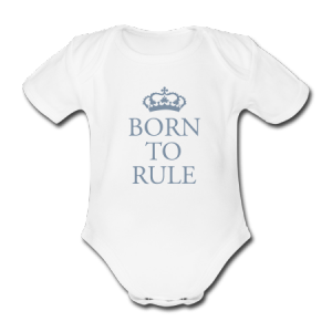 And it gets even better:Β Spreadshirt recently started a cooperation with famous twitter “queen” @Queen_UK – and thus has even more great royal baby designs to offer. So, if you are looking for a nice gift to send to William and Kate, how about a baby body like this: