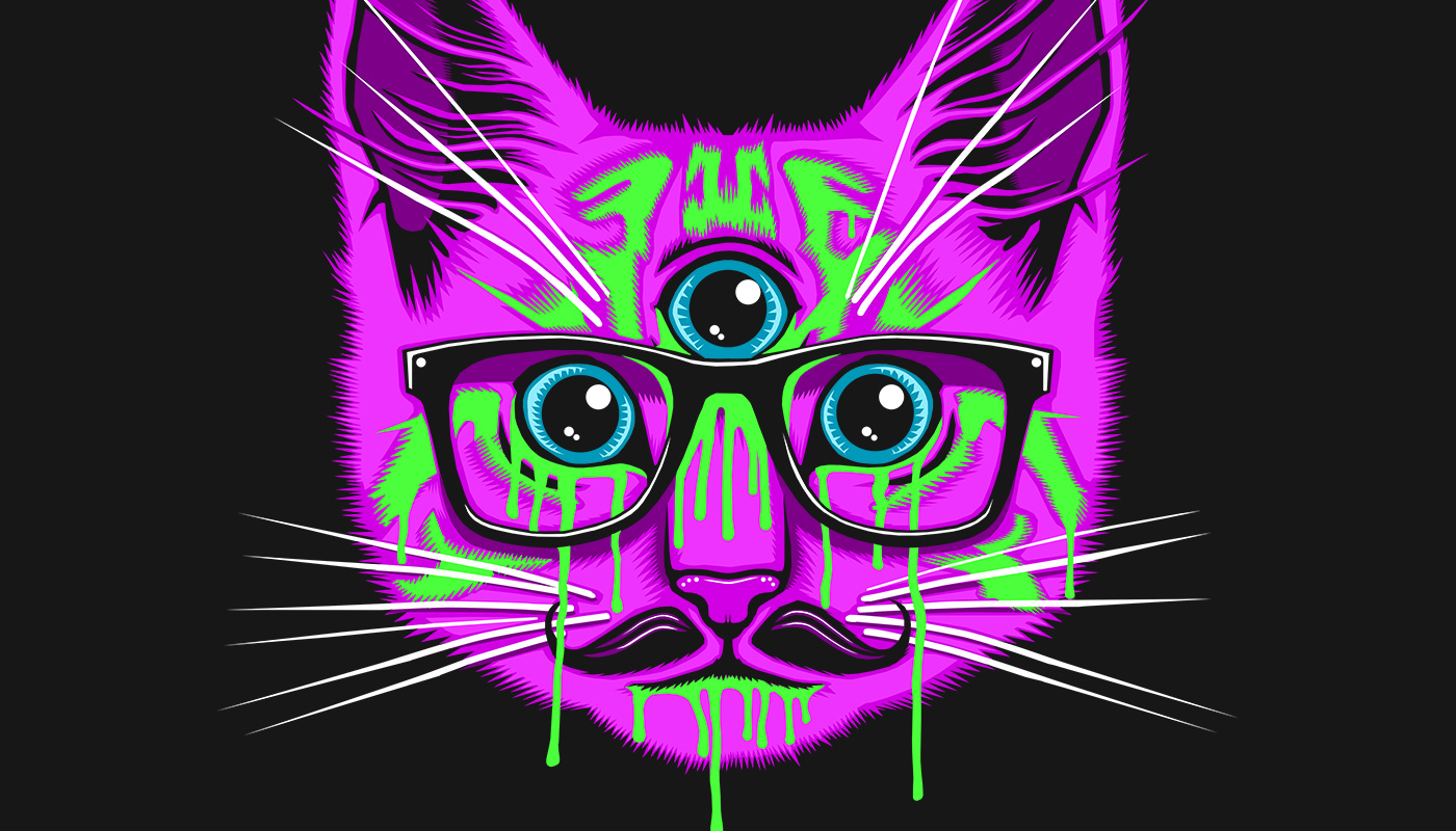 Haha it depends on the mood! I love the aesthetic of eastern religious iconography, I love cats and I love silly childish humour because I’m essentially a 6 year old boy in the body of a 26 year old man-child, still feeling surprised to see facial hair desperately trying to pepper my face. I prefer to build my image library based on established niches rather than keep up with the hustle and bustle of fads or trends, for the sake of timelessness (and laziness). Trying out different aesthetics is the real fun part, experimenting with the look and feel of a specific thing or experimenting with intricacy in limited colours, I’d actually love a DTG printer in my house just to do experiments with.