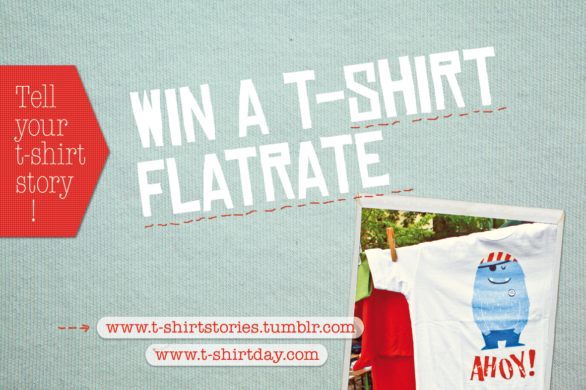 So before I tell you how to win a T-Shirt Flatrate I need you to do two things first. Nr.1: Take out your calendar or your phone or where ever you put down your important dates and make sure you will be wearing your favorite t-shirt on the 21st of June, Wear it to work, to dinner or to a date. It doesn’t matter. Wear a t-shirt and help us turning International T-Shirt Day into a global celebration. Nr.2: Take a look at International T-Shirt Day’s Facebook page and join one of the many events all over the world or join the virtual T-Shirt Day celebration and invite all your t-shirt-loving friends!
