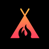 Sofa pillowcase 17,3'' x 17,3'' (45 x 45 cm)Flame in front of a camping tent red orange stylized