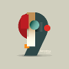 Glass jar with handle and screw capAbstract portrait with colorful lines.