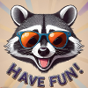 Hoodie- made by SPREAD Laughing raccoon with sunglasses