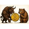 Poster 24" x 16" (60x40 cm)Bitcoin Battle – Bull vs Bear Showdown